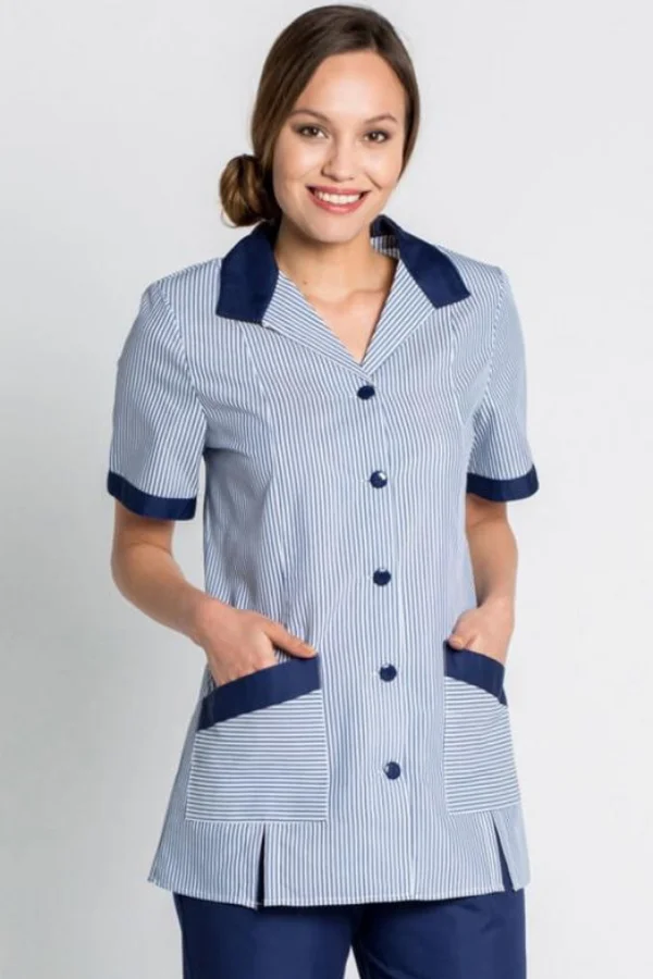 Durable and stylish uniforms designed for housekeeping staff in hospitality and residential settings.