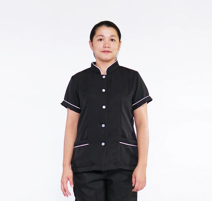 Elegant and comfortable attire for spa therapists and beauty professionals.