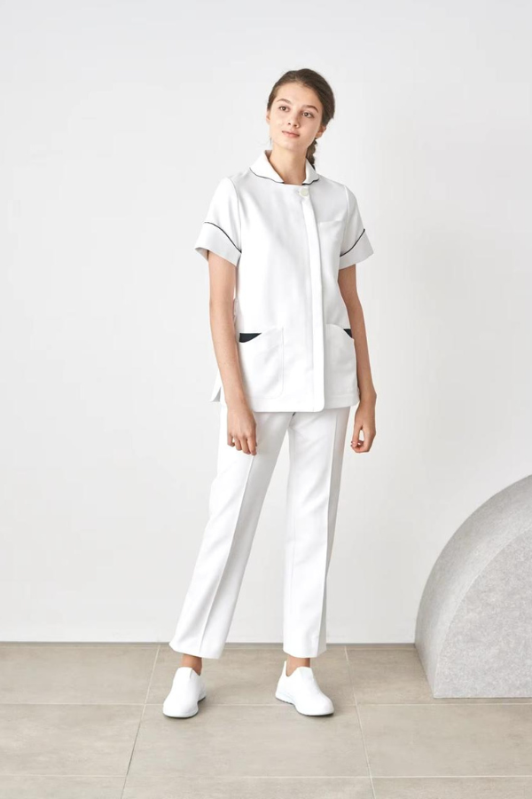 Elegant and comfortable attire for spa therapists and beauty professionals.